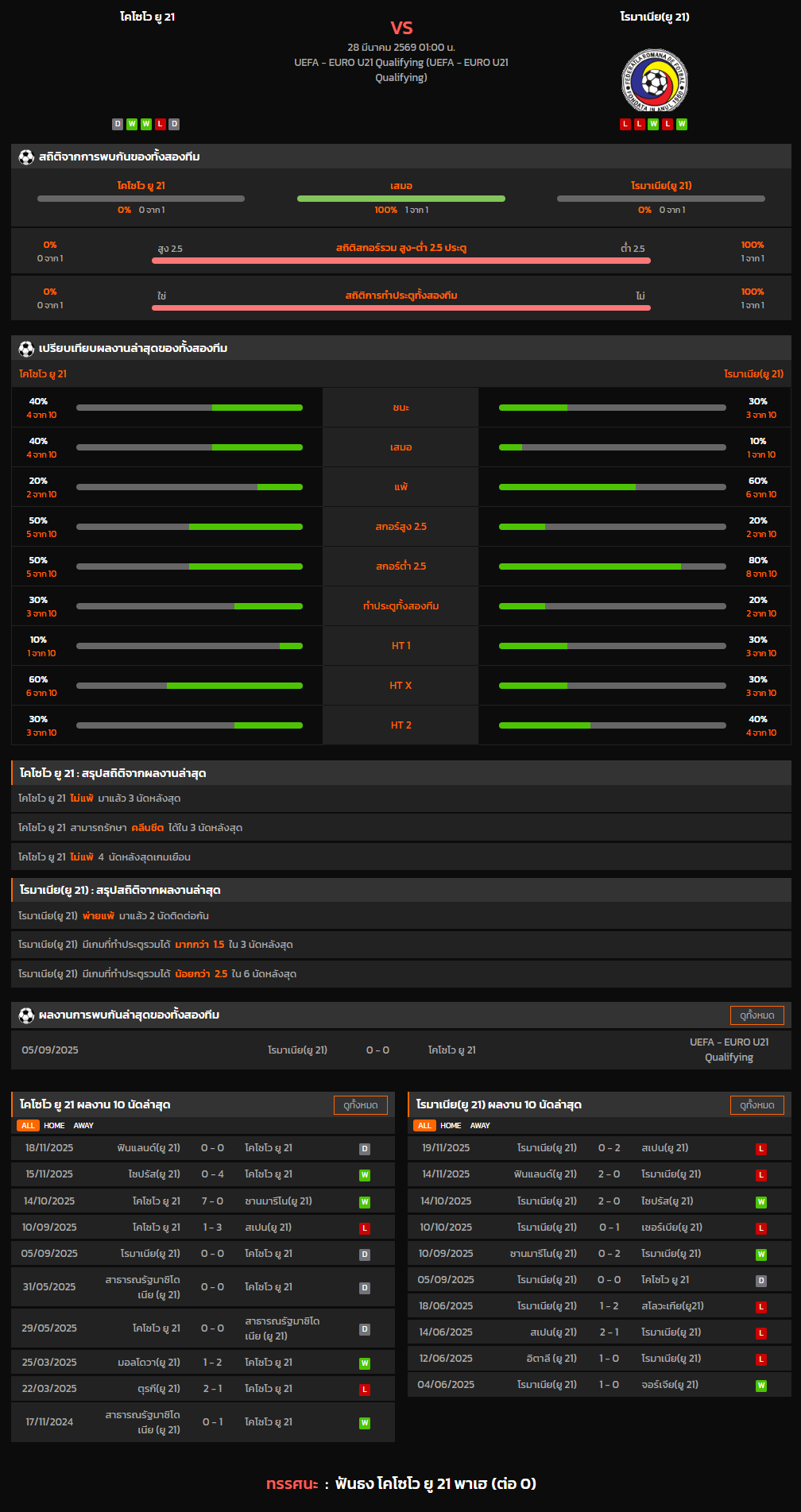 วิเคราะห์บอล ชิงแชมป์แห่งชาติยุโรป U-21 2026 โคโซโว ยู 21 VS โรมาเนีย(ยู 21)